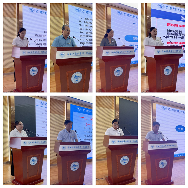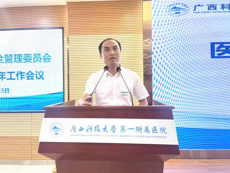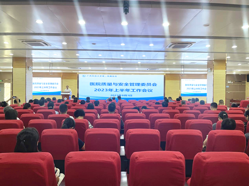 2023年8月3日下午,广西科技大学第一附属医院(第一临床医学院)在医院学术报告厅召开医院质量与安全管理委员会2023年上半年工作会议。医院(学院)党委书记庞晓红、党委副书记、院长覃天教授等医院领导班子出席会议。医院质量与安全管理委员会成员、中层干部、护士长等参加会议。会议由副院长张施明主持。