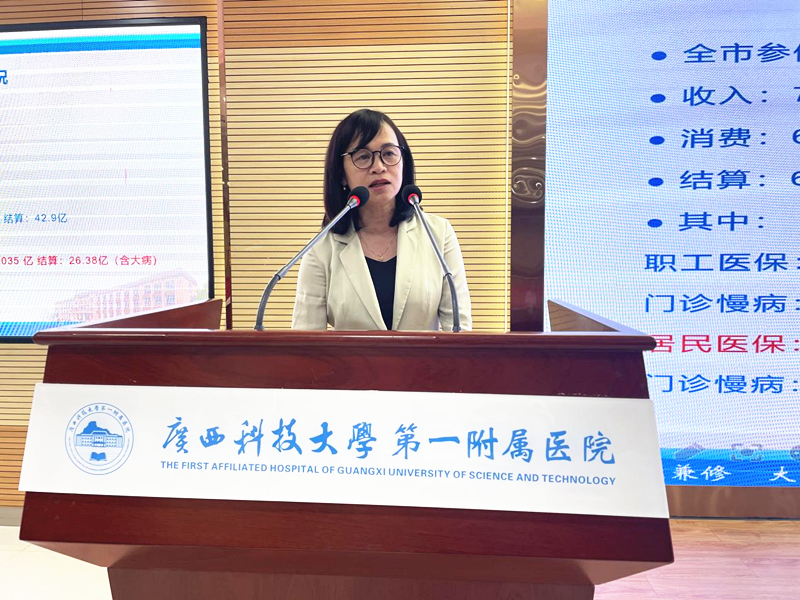 接着,黄进瑜副院长就2022年度柳州市及我院医保工作情况进行详细的分析,同时总结2023年上半年医保工作,明确医院下一步的医保重点工作。
