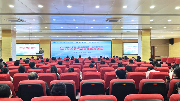 为增强干部职工廉洁自律、拒腐防变、克己奉公的规矩意识、纪律意识,努力营造风清气正的节日气氛。1月6日下午,广西科技大学第一附属医院纪委在学术报告厅组织召开“2022年春节前集体廉政谈话会”。院领导、各支部书记、中层干部和护士长约100人参加会议,院党委委员、纪委书记潘旭作廉政提醒谈话。会上,通报了近期自治区纪委关于3起党员领导干部家风不正典型案例,以及柳州市关于4起违反中央八项规定精神典型案例。