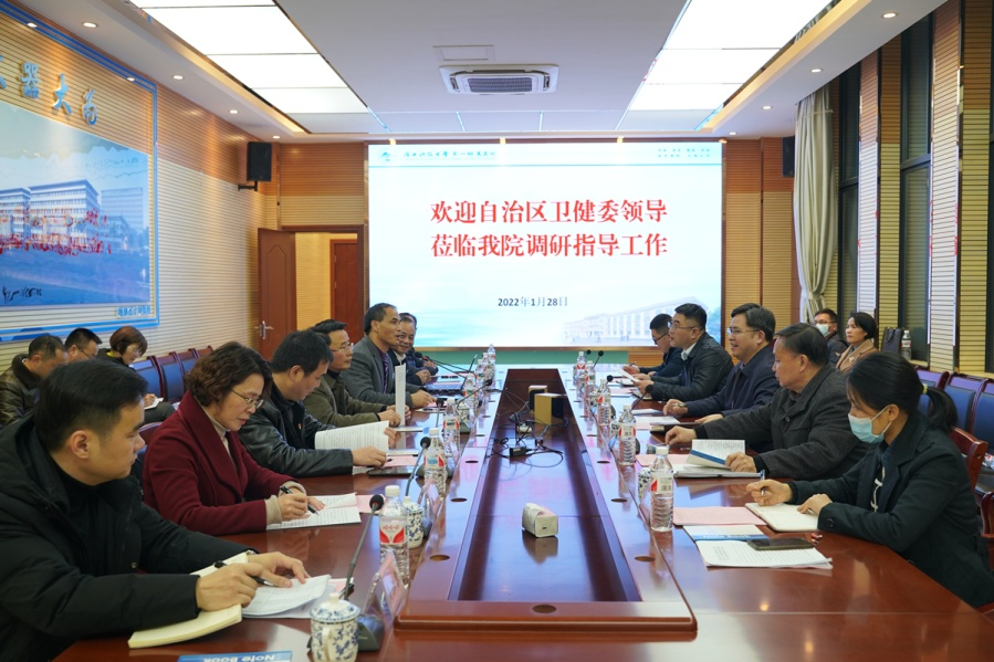 1月28日,自治区卫生健康委党组成员、副主任庞军,自治区卫健委二级巡视员王建政等一行5人组成督察组到我院开展医疗卫生领域腐败和作风问题专项督察。广西科技大学党委副书记张正义,我院全体领导及相关部门负责人参加此次督察。
