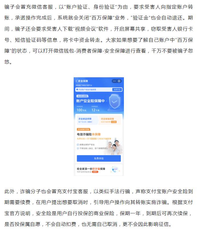 【反诈课堂】微信支付宝“百万保障”要扣费?小心骗局!