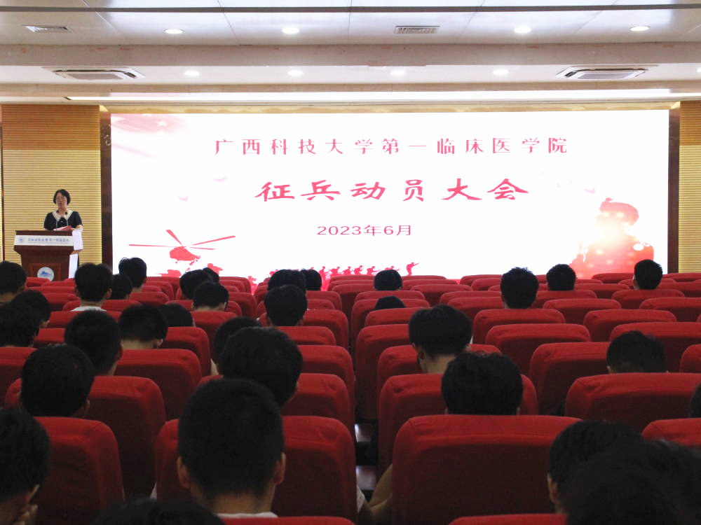 为落实征兵工作要求,做好征兵宣传动员,增强学院毕业生积极报名应征入伍的热情,2023年6月12日,广西科技大学第一临床医学院在学术报告厅召开征兵动员会。第一临床医学院学工办主任、团委书记唐艳红出席动员会。