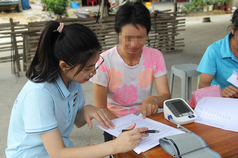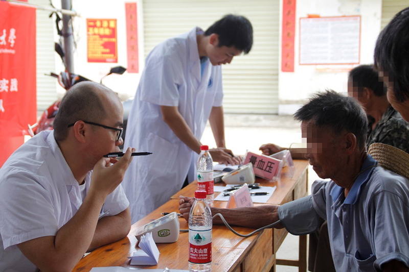义诊小队活动主要为村民提供专家问诊、免费测量血压、B超检查、心电图检查等诊疗服务。专家们和实践成员耐心询问村民的日常生活习惯及身体状况,针对病情作出专业诊断,并对日常生活各方面进行了指导,通过开展健康义诊服务,解决部分村民看病难的问题,组织健康体检,对常见病进行健康筛查。村民纷纷表示在家门口就能就医,非常方便而且暖心又贴心。
