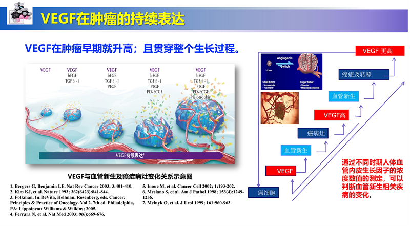 VEGF的广谱性可以涵盖几乎所有肿瘤,即使是白血病等非实体肿瘤,因为涉及骨髓造血机制,疾病本身促进VEGF的产生,其VEGF浓度变化对临床诊断有参考价值。这是其他肿瘤标志物所不能的。