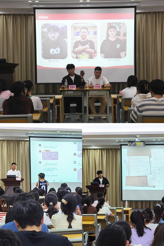 会上,三位学长结合自身考研经历,围绕目标院校选择,资料准备,英语、政治及西医综合复习规划,心态调整及复习注意事项几个方面给同学们提出了宝贵意见,同时推荐了相关的备考资料和视频课程供同学们参考。