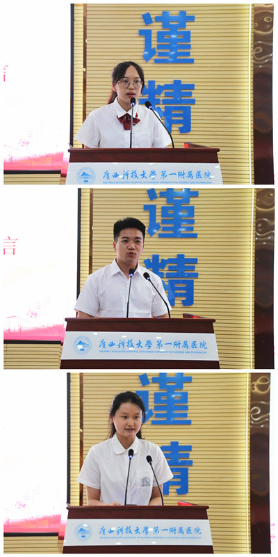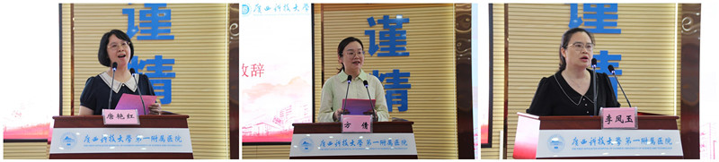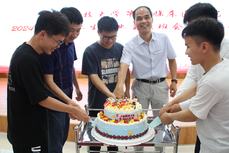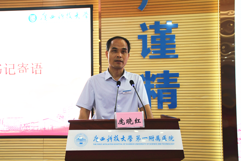 庞晓红在会上向学业有成的毕业生们表示最热烈的祝贺和最衷心的祝福。他表示,一临床学子是学院改革发展的见证者和参与者,学院与学子们一同成长,他向全体毕业生提出三点期望:一要厚植家国情怀,做爱党爱国的忠诚践行者。二要练就过硬本领,做仁心仁术的从业者。三要勇于创新、创造,做热忱热血的追梦者。他希望同学们继续发扬“敢为人先、百折不挠、务实创新、追求卓越”的广西科大精神,积极了解学术前沿,勇攀高峰,以实际行动创造无愧于时代、无愧于人民、无愧于历史的青春业绩。