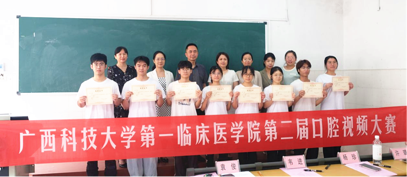 为提升医学生专业技能,提高知识科普水平,全面提升学院口腔医学人才培养质量,近期,广西科技大学第一临床医学院在J03教室举办第二届口腔科普视频大赛。院党委副书记何曲波出席开幕式,教学科科长袁俊、学工部副主任许璐、口腔门诊部主任、口腔教研组主任杨珍、口腔科主任韦进参加开幕式。