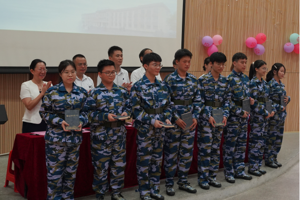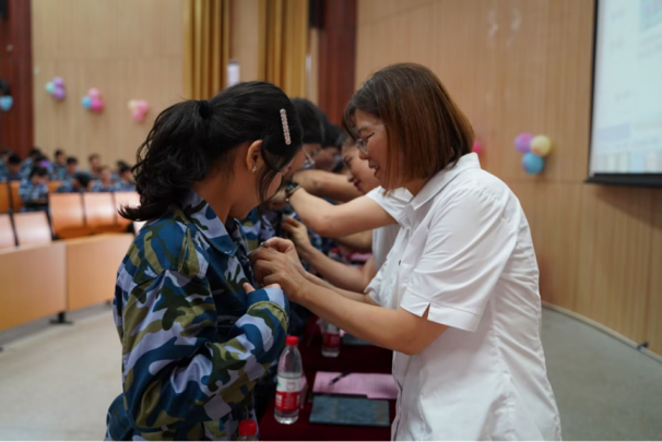 学院领导为新生代表佩戴校徽、赠送笔记本