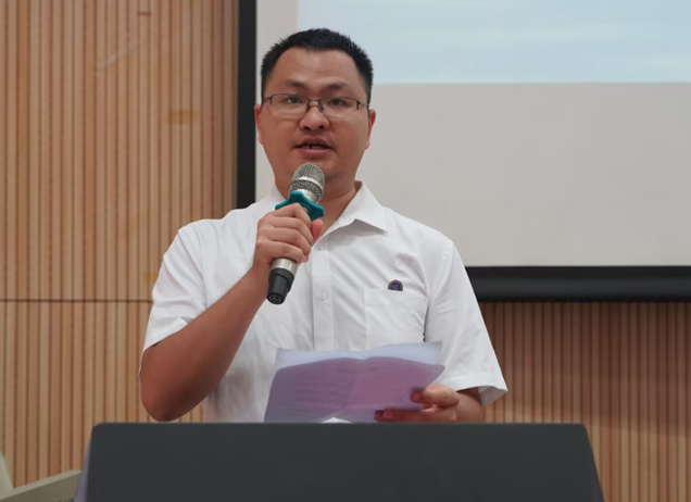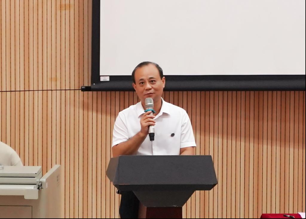 教师代表梁伟明老师鼓励全体新生保持对新知识、新技术的敏感性和求知欲,不断更新自己的知识体系和技术水平,未来用自己的医术和爱心为人类的健康事业贡献自己的力量。