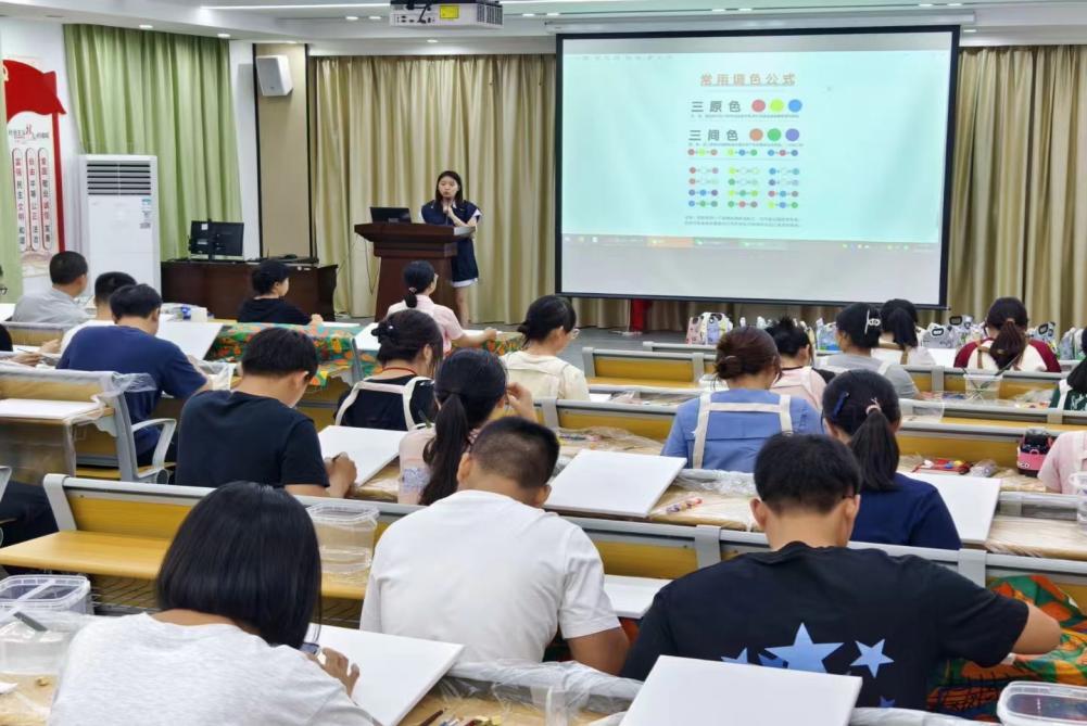 活动中,美术老师给大家讲解了油画构图和调色的基础知识和技巧,党员们认真聆听……飘扬的红旗、盛放的鲜花、宏伟的山河……大家绘出自己心中祖国的繁荣昌盛的图景,用色彩点燃爱国情怀,为祖国献上一份真挚的祝福。