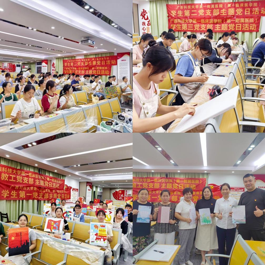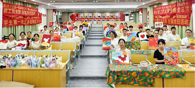 为庆祝中华人民共和国成立75周年,厚植家国情怀,9月19日晚,广西科技大学第一临床医学院教工党支部和学生党支部在白沙教学点党员活动室联合开展“共绘新时代,献礼新中国成立75周年”主题党日活动。