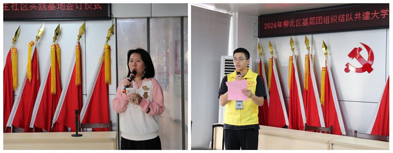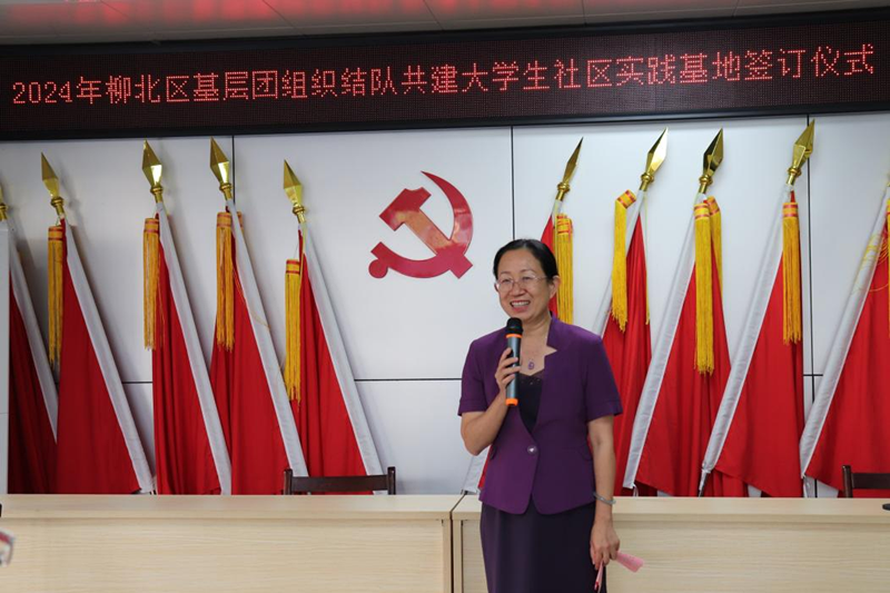 随后,柳北区柳长街道星城社区副书记程莲仙对上一阶段大学生社会实践共建工作做了总结汇报。学院志愿者代表韦俊杰发起青年志愿服务倡议。