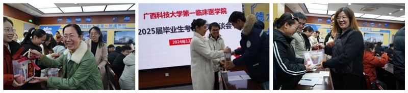 寒风习习,暖意融融。在考研的冲刺阶段,为增强考研学生备考信心,鼓舞备考斗志,广西科技大学第一临床医学院于12月13日上午在白沙教学点举办了一场主题为“研路相伴,暖心助考”的考研动员座谈会。学院党委书记庞晓红、党委副书记、院长覃天等领导出席会议。座谈会由党委副书记何曲波主持。