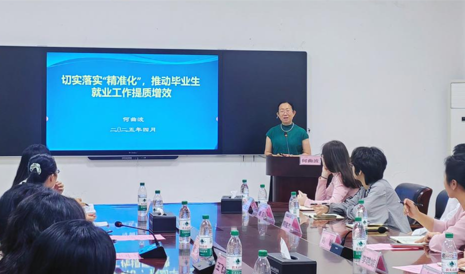 何曲波以“切实落实‘精准化’,推动毕业生就业工作提质增效”为题,分享了精准化推动毕业生就业工作提质增效的主要做法。
