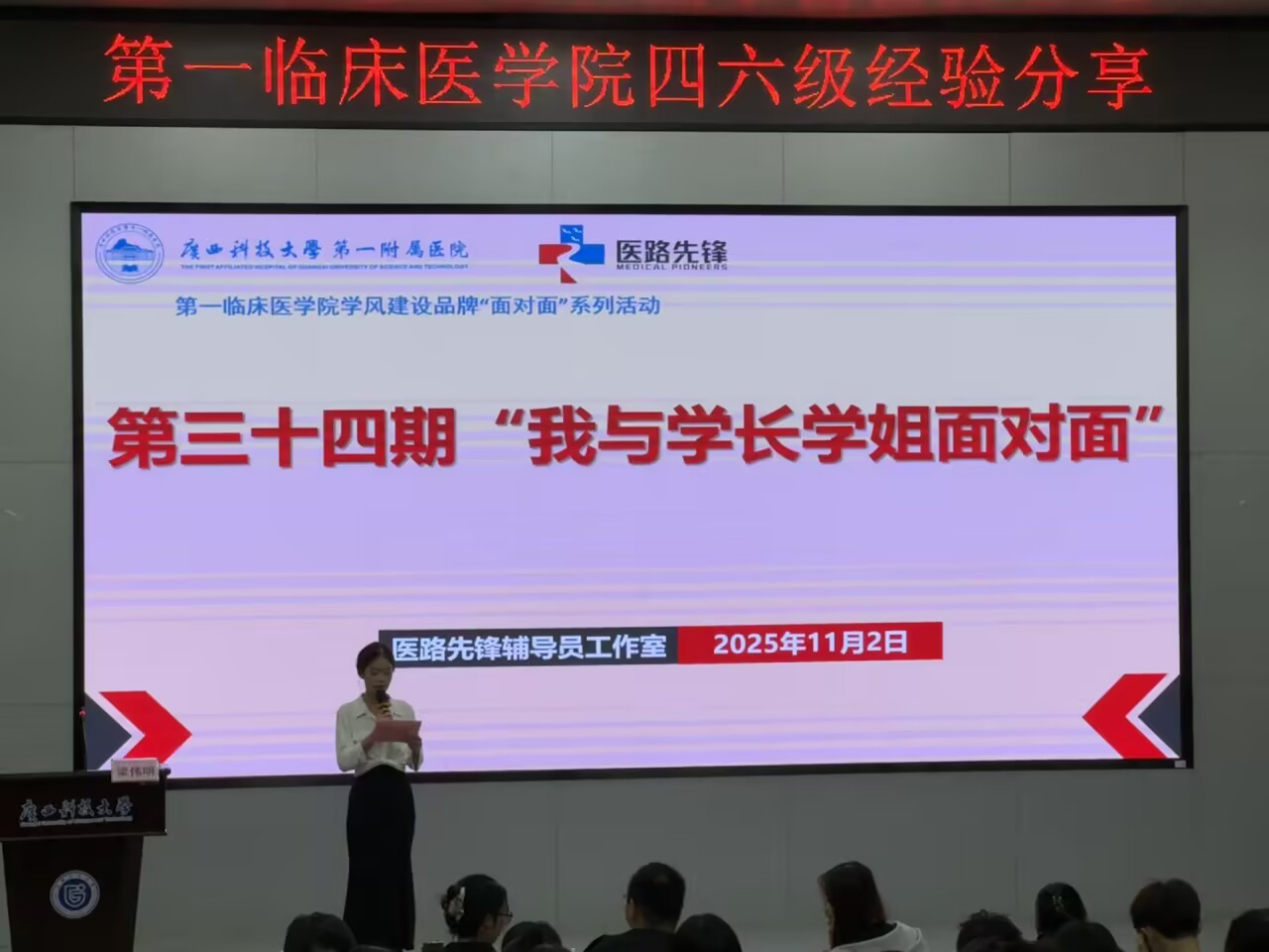 秋意渐浓,备考正当时!为助力同学们在十二月的英语四六级考试中乘风破浪,广西科技大学第一临床医学院教工党支部与学生党支部携手合作,在图书馆报告厅为同学们带来一场内容扎实的英语四六级备考分享会。临床医学院2024级、2025级等众多学子齐聚一堂,共同学习“备考新方法”。