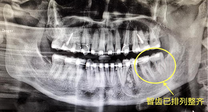 1.智齿完全正位萌出,能得到充分的清洁以避免龋坏,智齿咬合及邻接关系良好,能正常行使咀嚼功能;