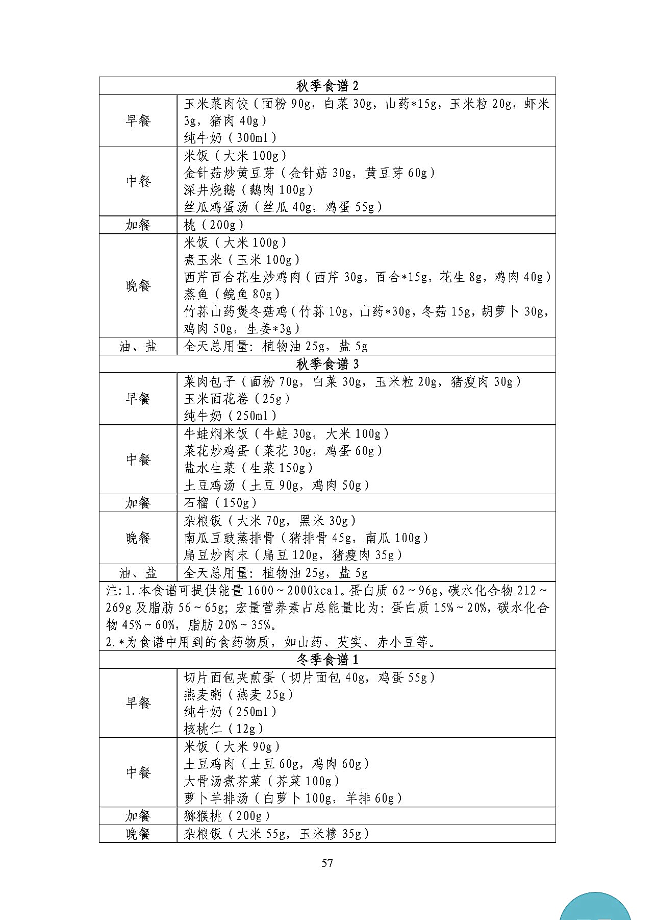 2、主食定量,粗细搭配,全谷物、杂豆类占1/3。