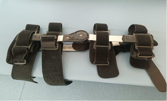 2、早期步行时,支具锁定0°(待恢复大腿肌力,可轻松仰卧直抬腿时,则可逐步解锁支具从30°到90°);拄双拐辅助,一般需拄拐6周左右,4周左右过渡为单拐(健侧拄拐)。
