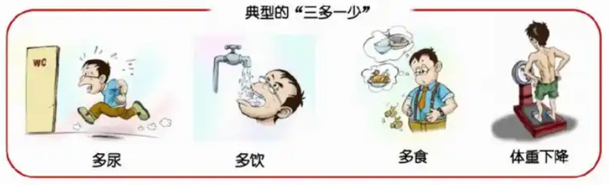 3.随机血糖:如有口干、多饮、多尿、体重下降症状,任何时间段抽血测血糖≥11.1mmol/L,可诊断为糖尿病。