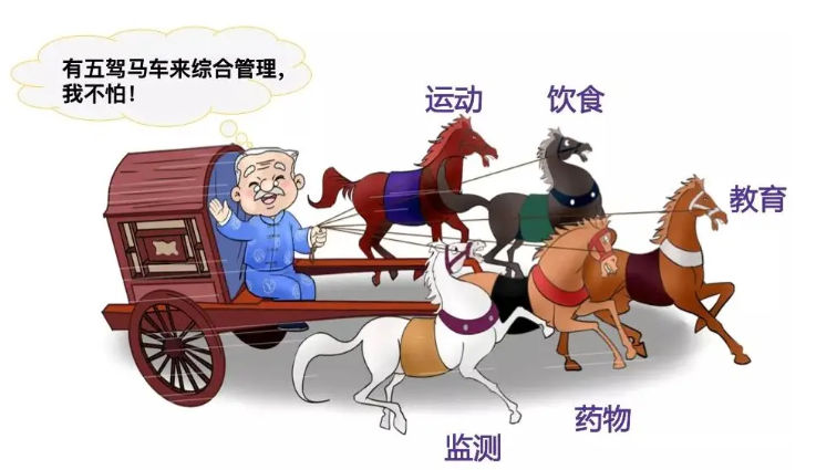 糖尿病作为一种日益普遍的慢性疾病,其管理可类比为驾驶一辆马车,五驾马车代表了五个关键管理方面:健康教育、饮食控制、适当运动、药物治疗和血糖监测。健康教育提供方向,饮食控制是马力,适当运动是车轮,药物治疗是刹车,而血糖监测则是仪表盘。只有掌握“五驾马车”的知识,我们才能有效地控制和管理糖尿病。五个方面必须协调配合,才能稳定地驾驭糖尿病这辆马车,避免血糖异常升高。