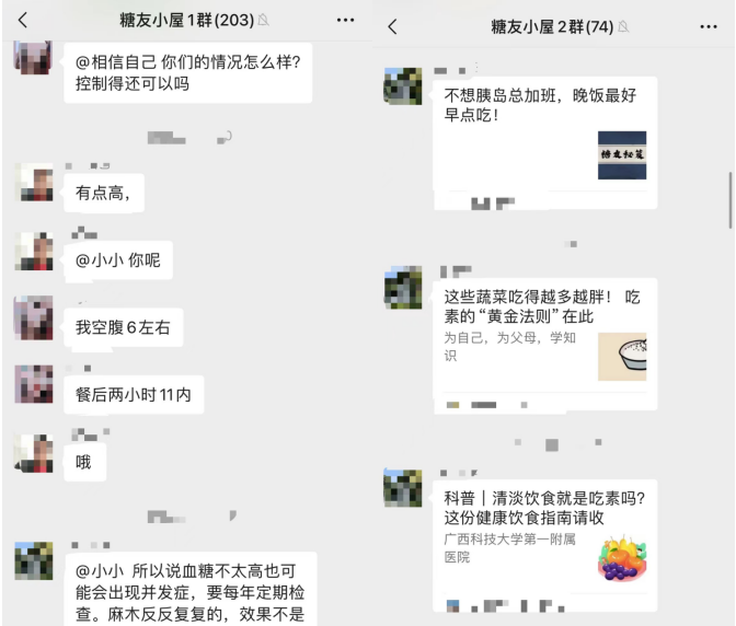 内分泌科的医护人员鼓励糖尿病患者加入糖尿病患者群,与其他患者分享经验、互相鼓励,医护人员也会不定期在群里传播各种糖尿病相关知识,帮助患者更好地理解和应对糖尿病,提高生活质量。