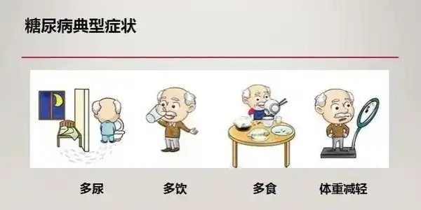 1. "三多一少":吃得多、喝得多、尿得多,体重反而下降