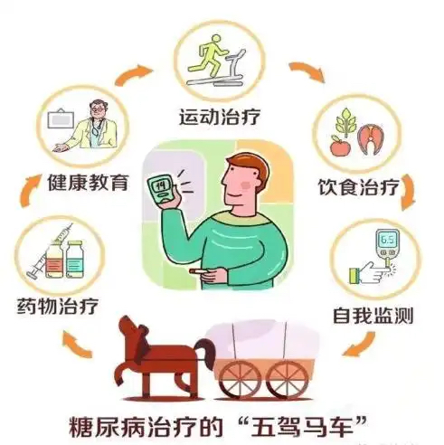 糖尿病管理的"五驾马车"来啦!别怕!学会这五招,血糖稳稳的: