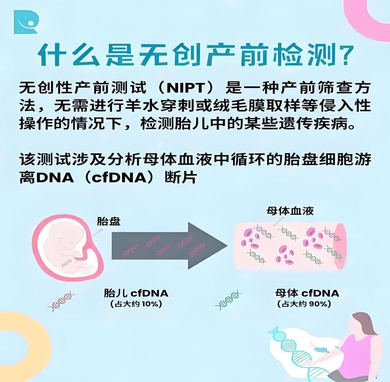 第二类是无创产前检测(NIPT),这是一种基于分子生物学技术的先进筛查方法。NIPT适用于孕10周后,通过采集孕妇外周血中的胎儿游离DNA(cffDNA),利用高通量测序技术对胎儿的染色体非整倍体(如21-三体、18-三体、13-三体等)进行分析。NIPT的显著优势在于其对唐氏综合征的检出率超过99%,假阳性率低于0.1%,具有极高的准确性和可靠性。此外,NIPT无需侵入性操作,对孕妇和胎儿的安全性较高。然而,NIPT的成本较高,可能不适合经济条件有限的家庭。此外,对于双胎妊娠或孕妇本身存在肿瘤的情况,NIPT的准确性可能会下降,因为这些因素可能干扰胎儿游离DNA的分析结果。