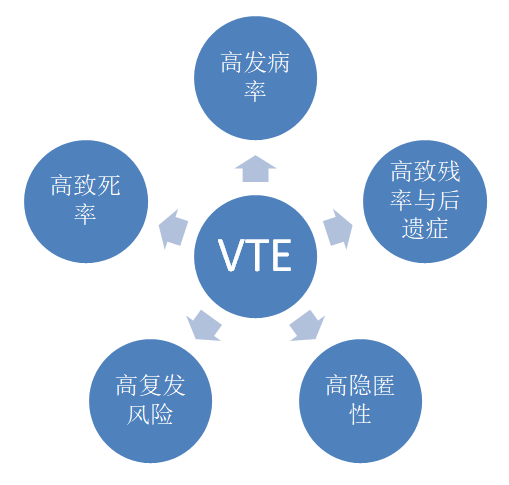 5.高复发风险:VTE患者即使经过规范治疗,未来复发的风险仍显著高于普通人,尤其是存在持续危险因素(如活动性癌症、易栓症)的患者。