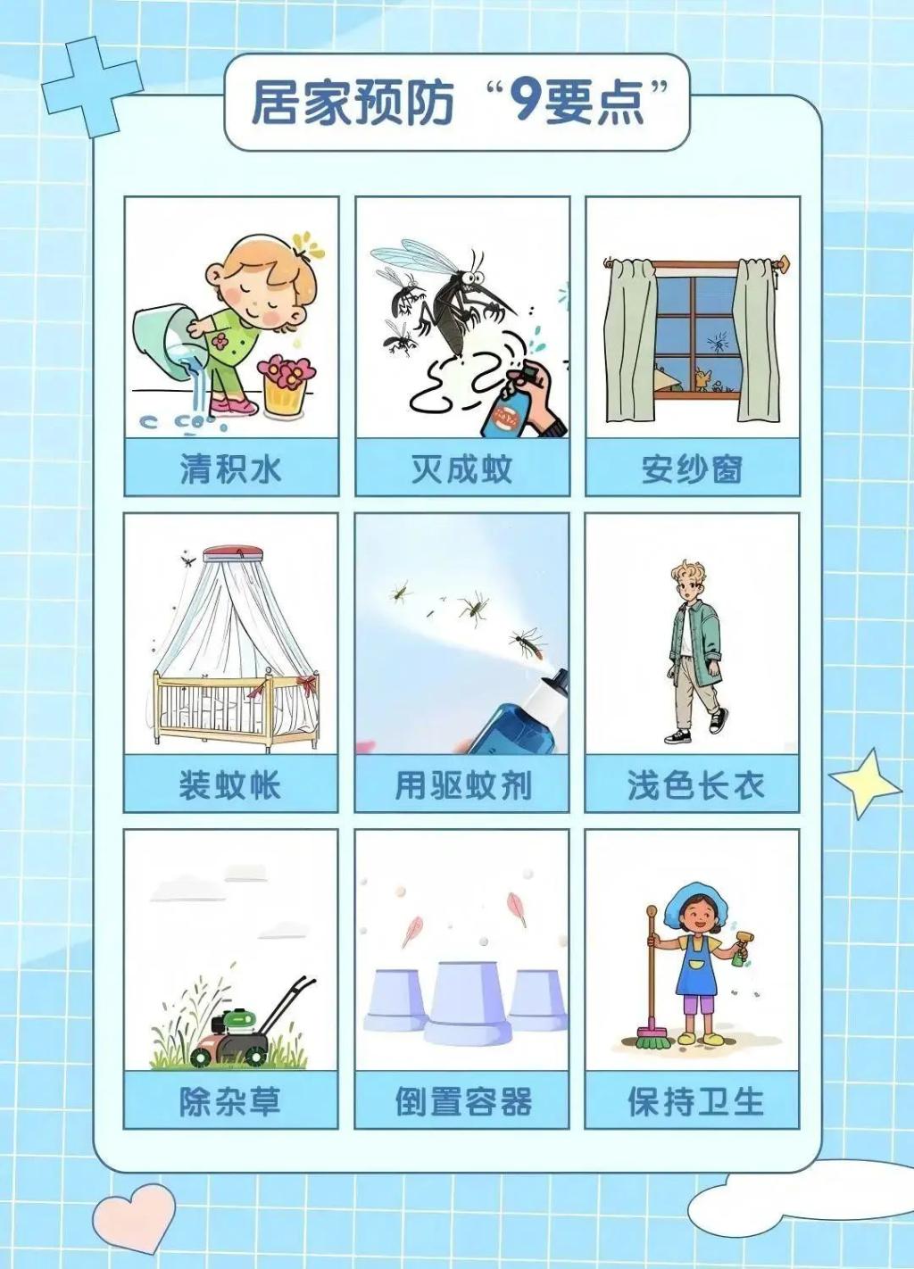 1.个人防护:出门穿浅色长袖长裤,也可在外露的皮肤及衣服上使用驱蚊剂。