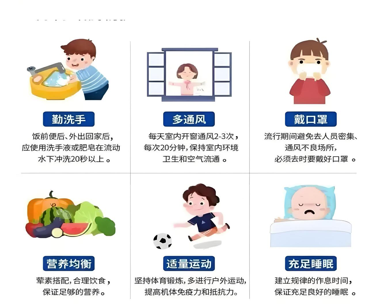 2、保持良好的个人卫生习惯至关重要:规范洗手,用肥皂和水洗手至少20秒;咳嗽或打喷嚏时用纸巾或手肘遮住口鼻;避免用手触摸口、鼻、眼;每天开窗通风至少两次。