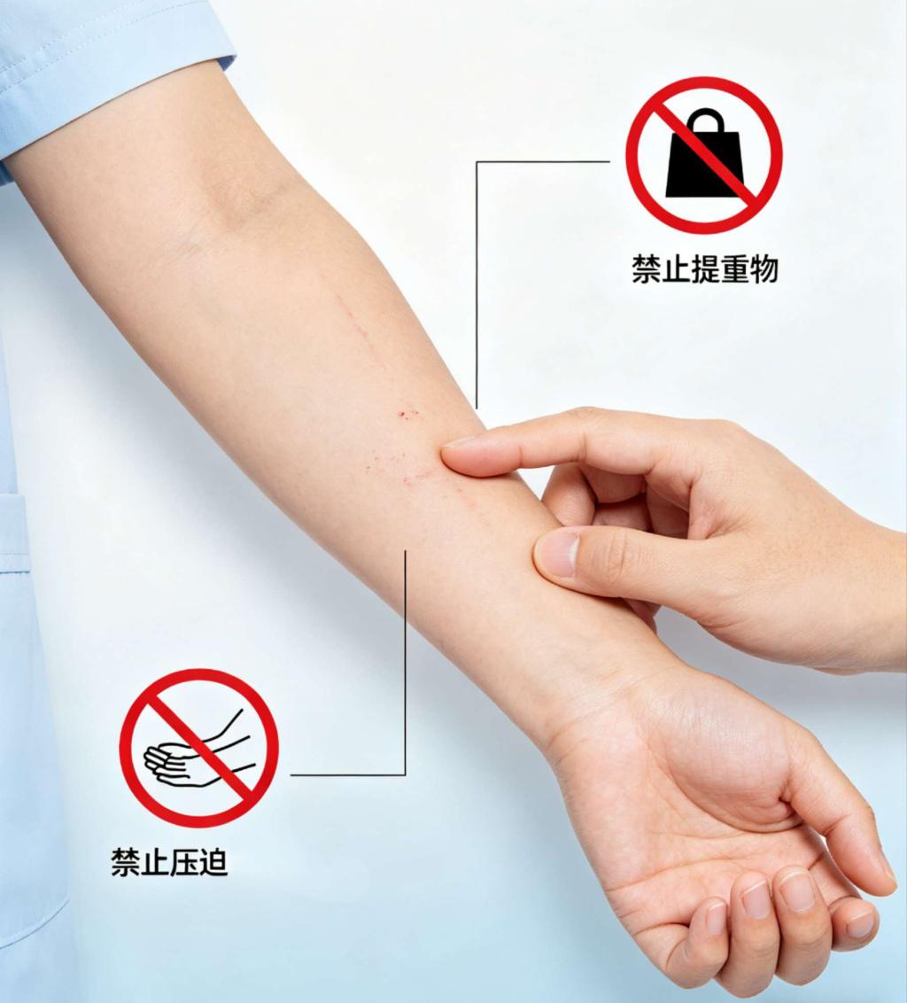 不挎包❌ 不被压迫,睡觉别枕着手臂,内瘘侧不戴手表、手镯、紧身袖套。
