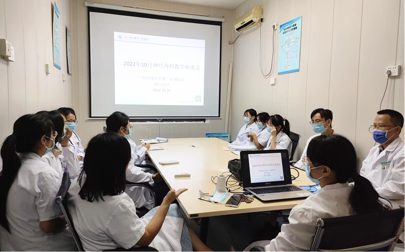 神经病学是一门专业性强、知识涉及面广泛的学科,并且概念抽象、病种繁杂,学员们普遍感觉学习困难,培养具备岗位胜任力的神经内科医生是住培工作的核心和关键。蒙莲老师坚持带教查房,在查房过程结合自身临床经验,引导学员们围绕疾病进行深入思考、讨论,并将最新的医学资讯、学习方法传递给学员们,对于学员提出的问题总是能耐心解答,强调我们的学员要“爱学习、会学习、能学习”。神经内科有些病种发病率低,临床罕见,每次在遇到少见病种时都会通知全基地学员,通过录制视频、拍摄图片等形式把临床资料收集好,并组织相应的小讲课、教学查房、病例讨论等教学活动,保证每一位学员都能学习到。