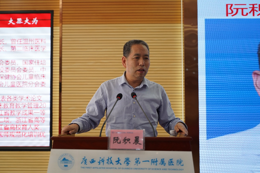 为提高我院住院医师规范化培训院级督导的水平,提高住培师资的教学能力,10月17日,广西科技大学第一附属医院在学术报告厅举办住培专题讲座。此次邀请到了温州医科大学阿尔伯塔学院阮积晨教授进行主题为《院级督导的思考与实践》的专题讲座。讲座由党委委员、副院长闭雄杰主持,副院长黄进瑜以及各专业基地主任、教学主任、秘书,轮转科室的教学主任、秘书,住培指导医师,协同单位以及基层实践基地的职能管理部门负责人、教学管理人员和指导医师参加了讲座。