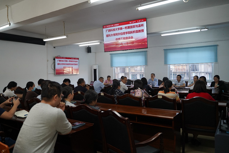 讲座结束后,阮积晨教授与医院党委副书记、院长覃天、副院长闭雄杰、副院长黄进瑜和各专业基地主任、教学主任、秘书,以及院级督导组的成员在第一临床2楼会议室进行了座谈。座谈会上,各专业基地管理人员和院级督导专家都借此机会向阮教授请教了在工作中遇到的问题,阮教授也一一给予了耐心且专业的解答。
