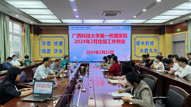 2月21日,广西科技大学第一附属医院(第一临床医学院)在实验综合楼1楼一楼会议室召开2024年2月住培工作例会。党委书记庞晓红、党委副书记、院长覃天、副院长张施明、总会计师向桂云出席会议。住培科、临床技能培训中心、人事科、财务科、医务部、信息科等相关职能科室负责人,专业基地管理人员和轮转科室管理人员等共计80余人参加了会议。会议由副院长黄进瑜主持。