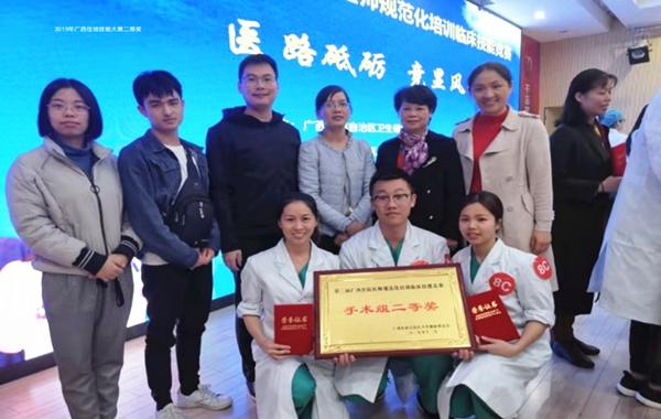 医院临床技能培训中心1000多平方米,教学设备120多种类500余套,满足培训和考核需要。住培学员在广西第二、三、四届住培技能竞赛中分别获得二、三等奖、优秀奖。