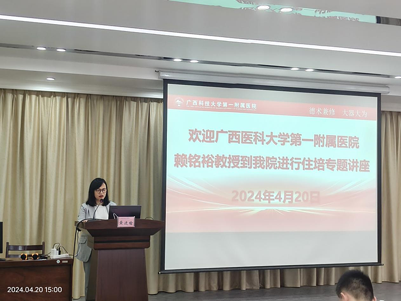 副院长黄进瑜主持并致辞。她表示,我院自2020年获批国家级住院医师规范化培训基地以来,一直本着为各级医疗机构培养具有良好的职业道德、扎实的医学理论知识和临床技能,能独立、规范地承担本专业常见多发疾病诊疗工作的高质量的医学人才为目标,不断提高基地的教学质量及临床师资的带教能力,通过四年的努力,培训基地基本条件、过程管理、师资建设、质量监督、保障措施等方面均有了较大进步。此次邀请赖铭裕副书记前来授课,是促进住培工作不断完善的良好契机。