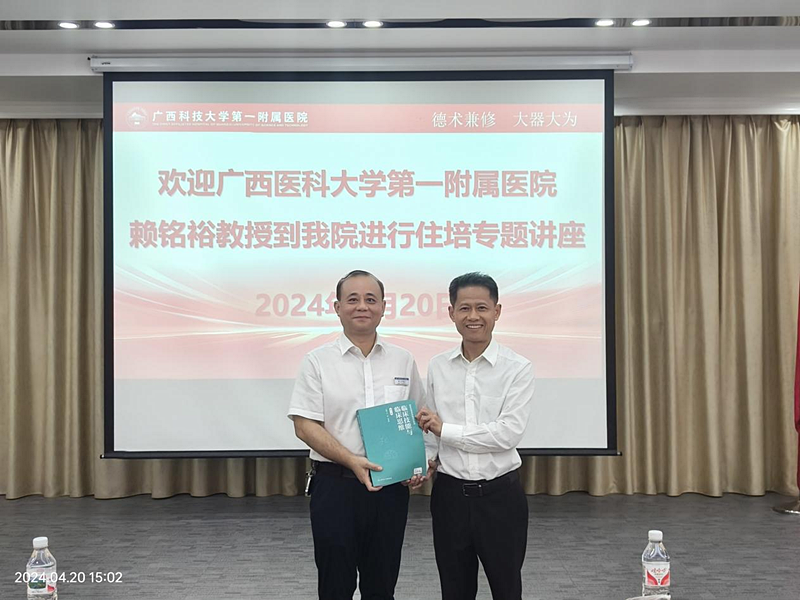 为做好国家住培评估迎检准备工作,4月20日下午,我院特邀请广西医科大学第一附属医院党委副书记赖铭裕教授到院进行住培专题讲座:如何做好迎接国家住培基地评估工作。