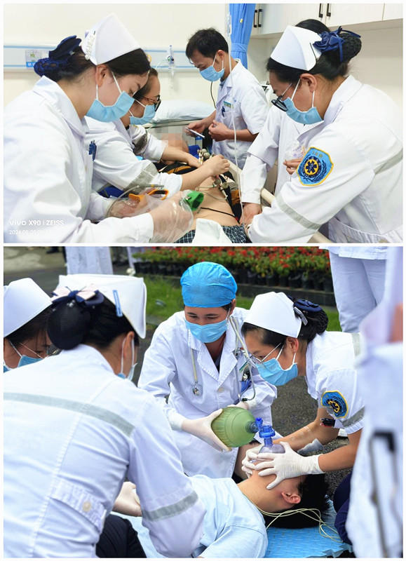 印象最深刻的是5月最后一天的班里,我出诊到胜利小区,接病人回来的路上与护士梁琪琪给心脏骤停的老人一直按压,一到抢救室,韦主任就带领大家施救,他果断、快速的发出口头医嘱,在场的老师们有条不紊的进行胸外心脏按压、气管插管、上呼吸机、药物推入等,大家的心揪在一起,直到看到心电图由直线开始有了变化,病人又恢复了自主心跳和呼吸,大家在那一刻由衷地高兴。