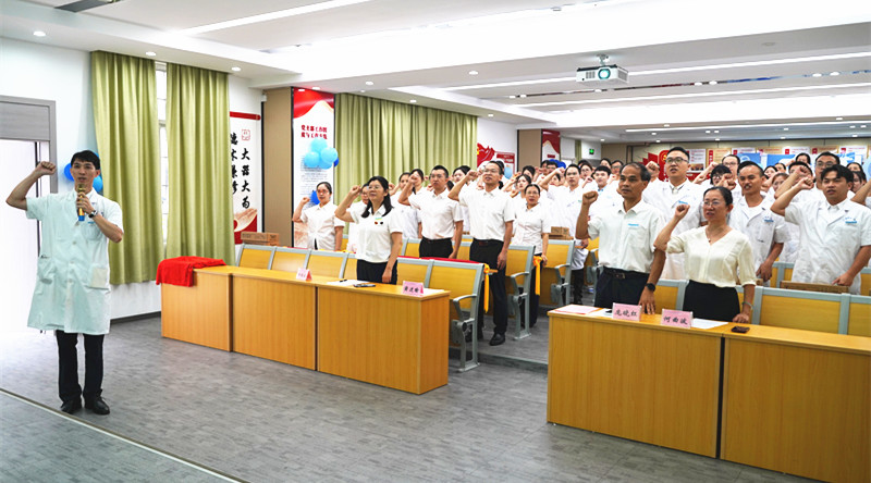 庞晓红书记总结讲话。他说,我院作为国家级住院医师规范化培训基地,始终以培养“临床能力为核心、医学人文为灵魂、创新思维为引擎”的新时代卓越医师为目标。医院见证了大家从青涩医学生到合格临床医师的华丽蜕变,用汗水诠释了"健康所系,性命相托"的医者初心。临别之际,他嘱托大家三点:一是在医术上精益求精,不断提升自己的专业水平;二是在医德上坚守底线,以患者为中心,提供温暖而专业的医疗服务;三是在团队协作上加强沟通,携手共进,共创医学事业的美好未来。