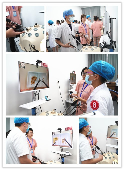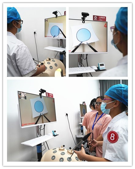 开幕式后比赛一触即发。比赛面对住培学员和青年医师,设置初赛和决赛,均为现场个人赛。初赛分两个项目:夹黄豆(使用训练模块)、剪圆圈,取总分青年医师组前6名、住培医师组前10名进入决赛。