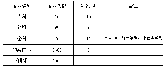 2026年我院面向社会公开招收住院医师规范化培训学员35人。招收专业及人数如下: