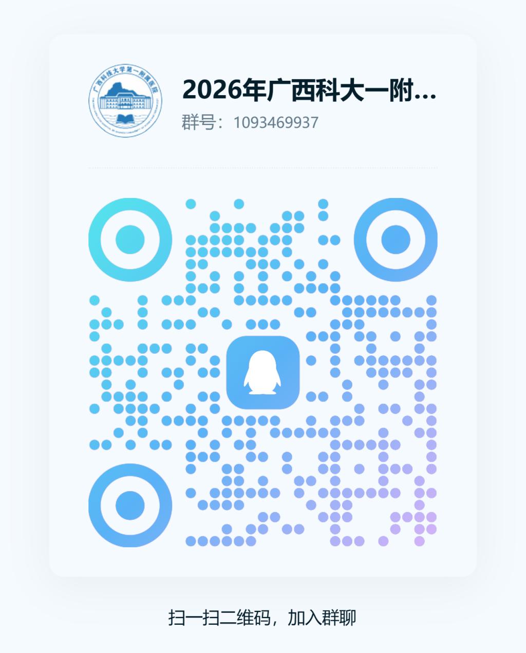 有意向报考我院的学员,请实名加入QQ群:2026年广西科大一附院住培招收群。QQ群号:1093469937。