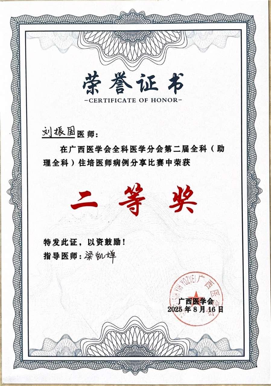 广西第二届全科住培医师病例分享比赛二等奖