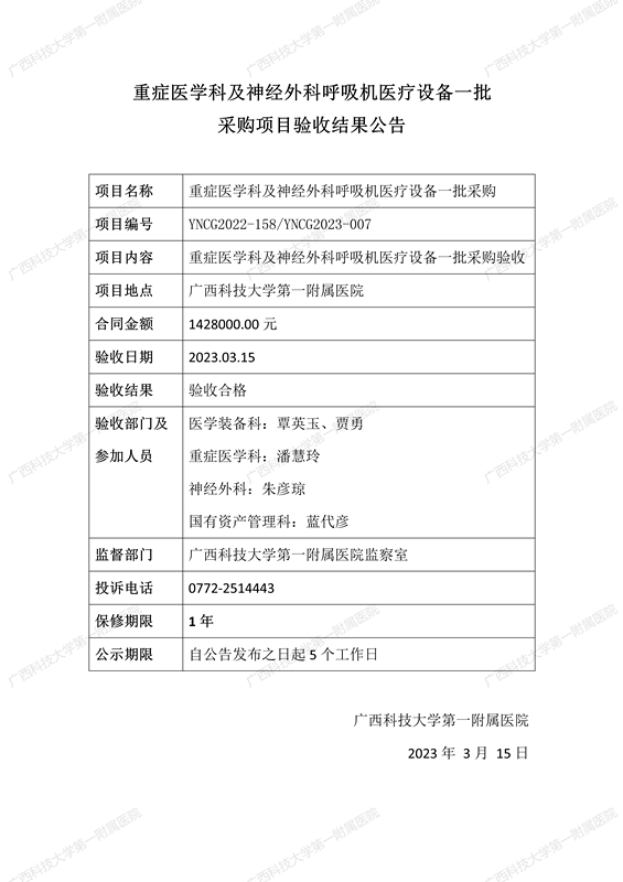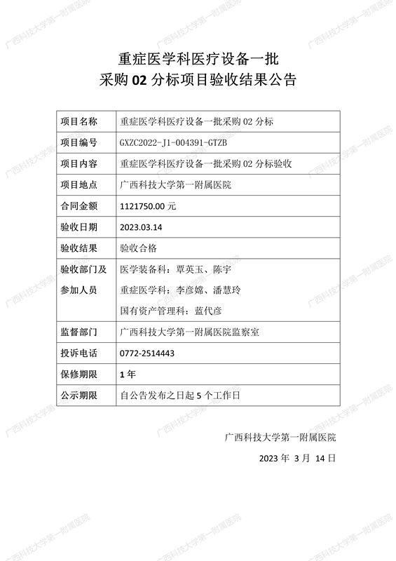 上一条:广西科技大学第一附属医院关于一次性输注类医用耗材院内遴选公告