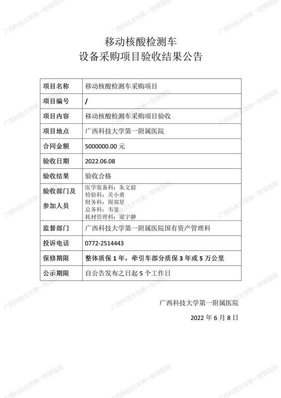 下一条:广西科技大学第一附属医院发热门诊、急诊过渡板房建设工程验收结果公告