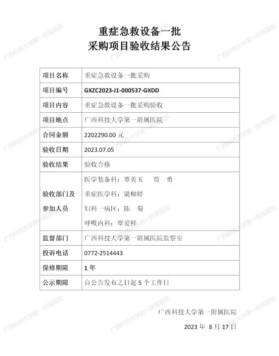 下一条:广西科技大学第一附属医院10kv增容专变工程项目验收结果公告