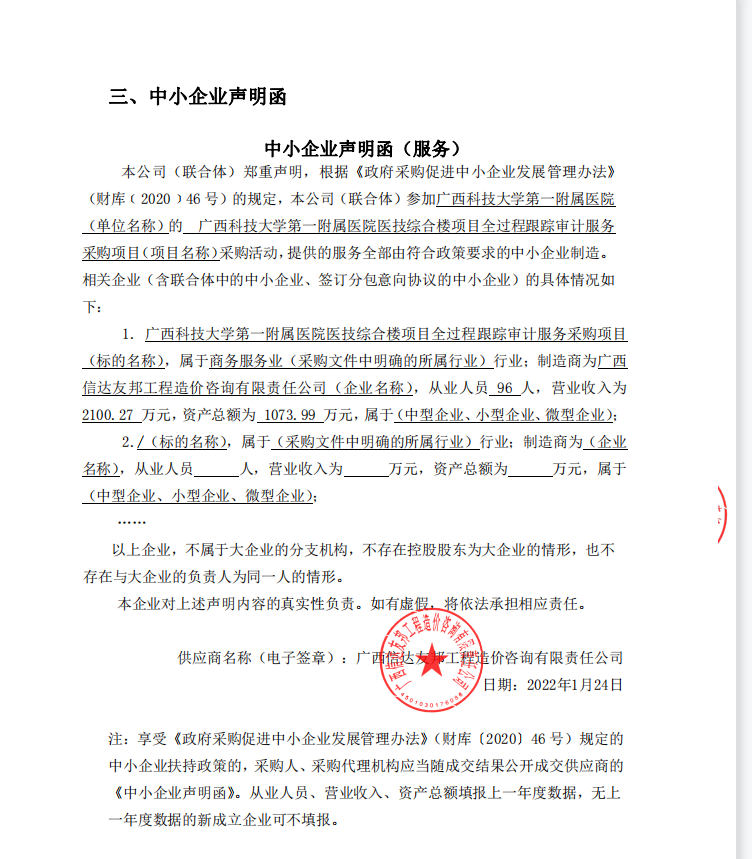 二、项目名称:广西科技大学第一附属医院医技综合楼项目全过程跟踪审计服务采购项目