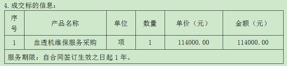 二、采购项目简要说明:血透机维保服务采购1项,如需进一步了解详细内容,详见竞争性谈判文件。